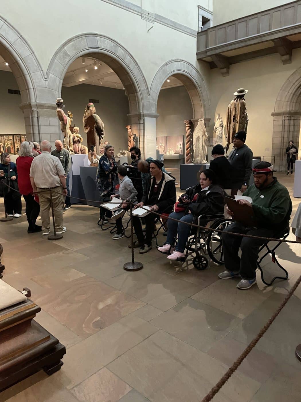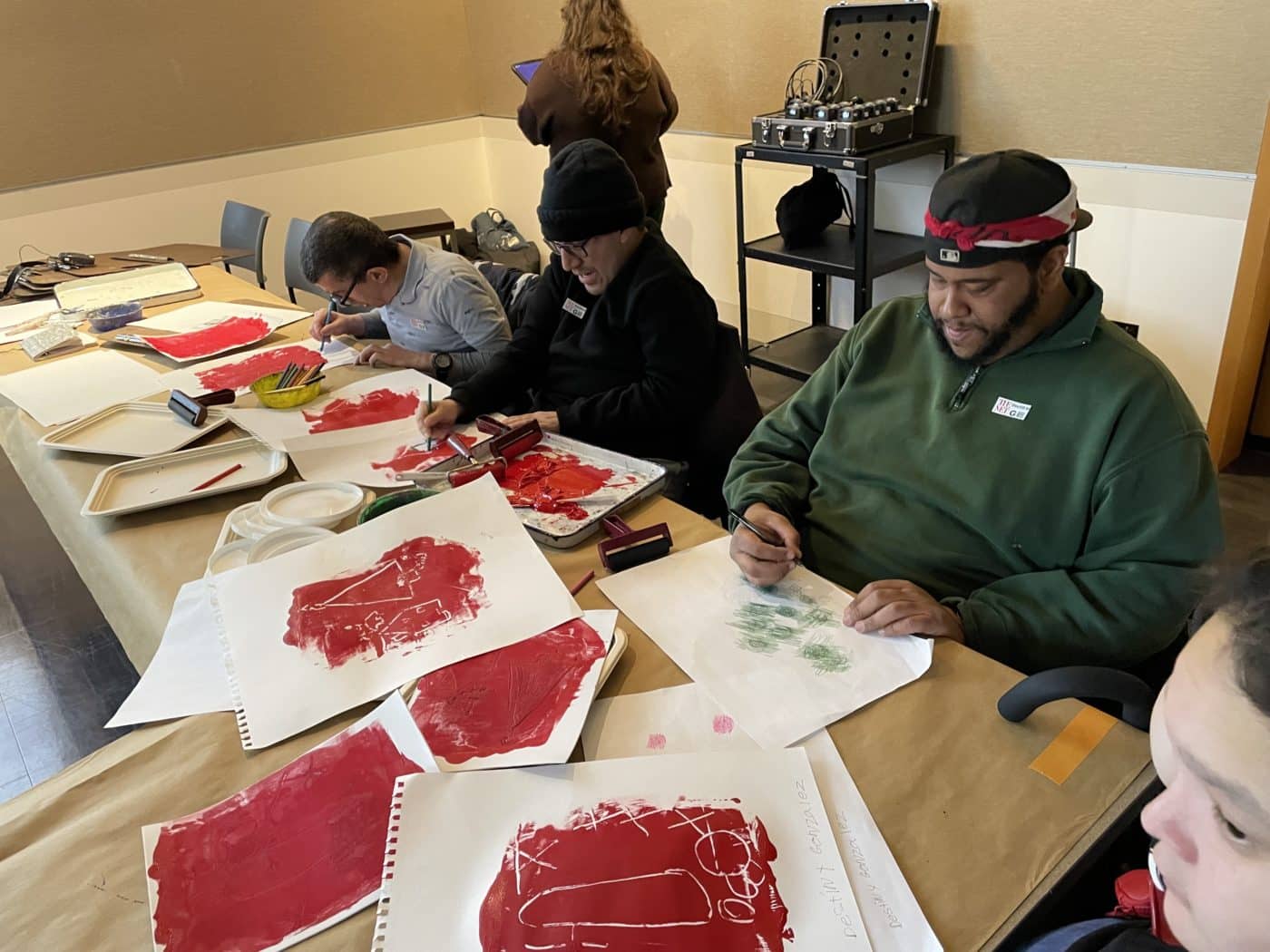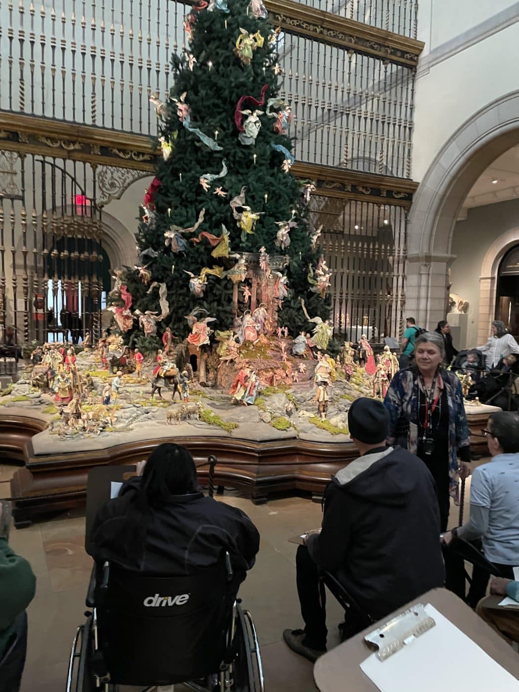 🎨 Individuals from Bainbridge and Day Hab Without Walls (DHWW) spent another day at the Metropolitan Museum of Art– this time for the holidays! They visited the museum’s beautifully decorated Christmas tree, which served as inspiration as they worked on their Christmas tree prints, their art project of the day.
