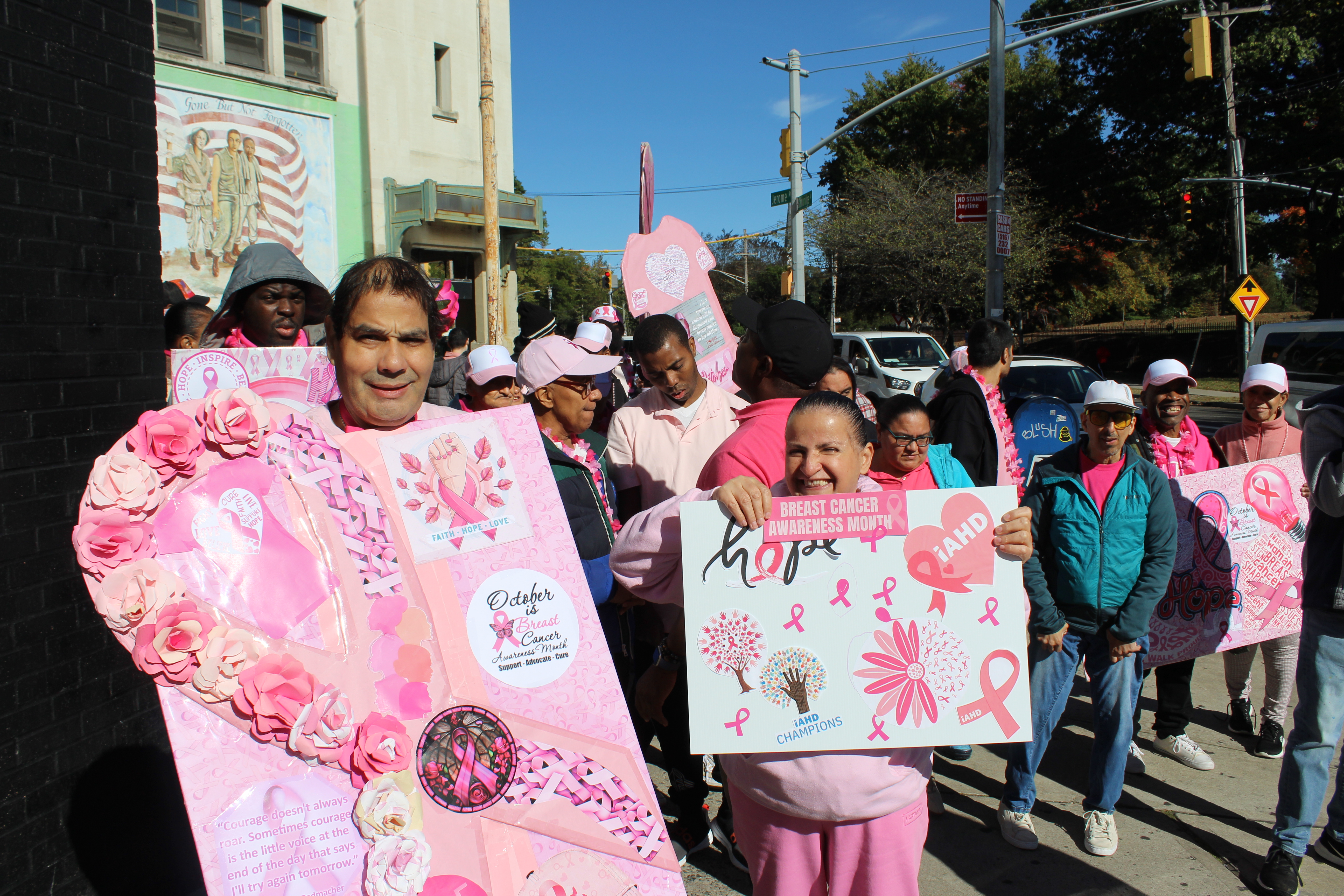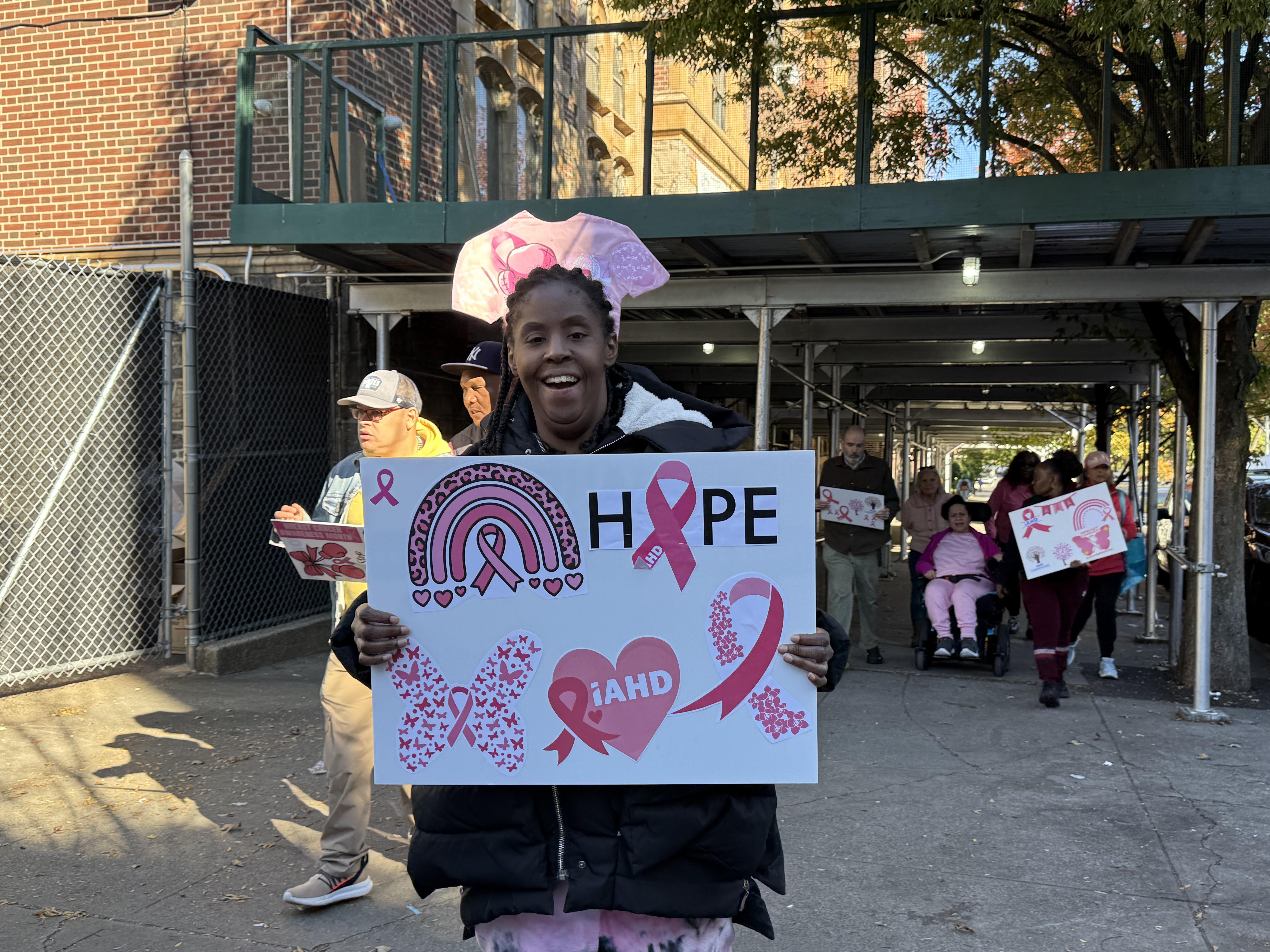 On Friday, October 17, IAHD held its annual Breast Cancer Awareness walk at the IAHD Bainbridge Day Program location. It was a picture-perfect day that was spent rallying together for this cause. Dozens of IAHD DSPs, staff, and people supported by IAHD walked a total of one mile around the neighborhood. Not only did they bring energy and excitement to the streets, but they also raised awareness towards this extremely important cause to the IAHD community.
