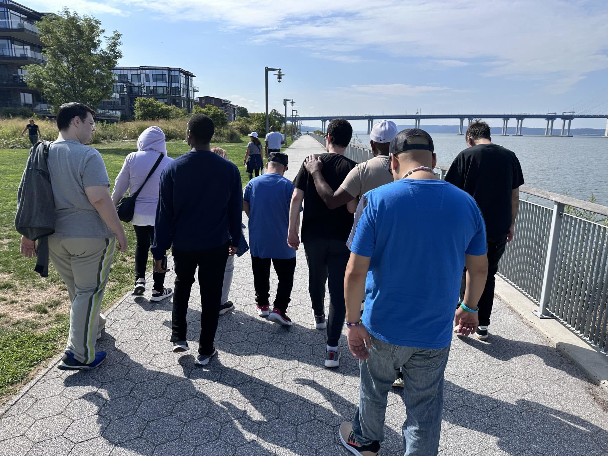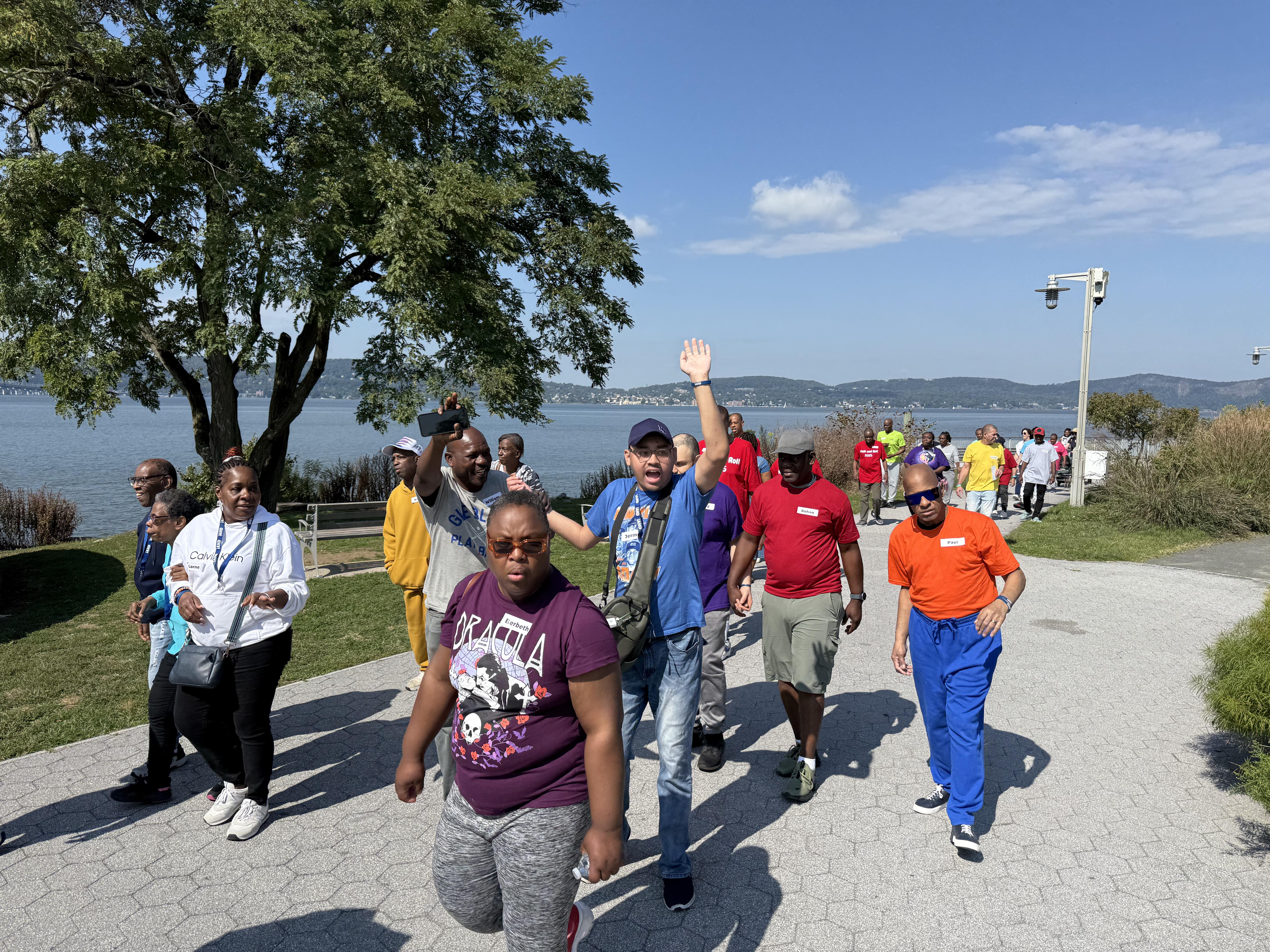 On September 13, IAHD held its second annual Walk and Roll with IAHD. Our community walk event focuses on spending time with friends– new and old– advocacy for the disability community and getting outside! The event was held at Pierson Park in Tarrytown, NY, on a Saturday morning, and it was a beautiful sunny day to walk along the Hudson River Walk. Over 150 people attended the walk, including the people supported by IAHD, their families, others at their residence, staff, board members, various vendors, and even some new members of the IAHD community!