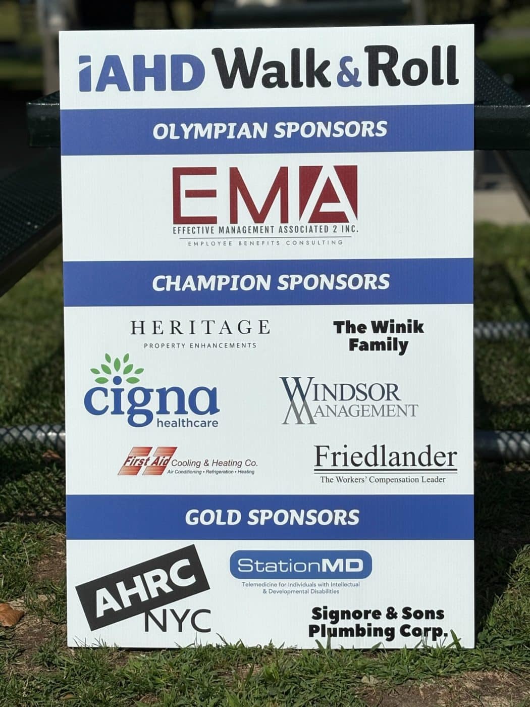 This day would not have been made possible without the support of our extremely generous sponsors: EMA2, Cigna Healthcare, First Aid Cooling & Heating Co, Friedlander, Heritage Property Enhancements, Windsor Management, the Winik Family, AHRC NYC, Signore & Sons Plumbing Corp, Station MD, Allure Specialty Pharmacy, the Silverman family, Drain Klee Sewer Service Inc, My25, The Gritta Family, the Gordon-Johnson family, the Marino family, the Siegel family. All money raised was put towards the IAHD Foundation.